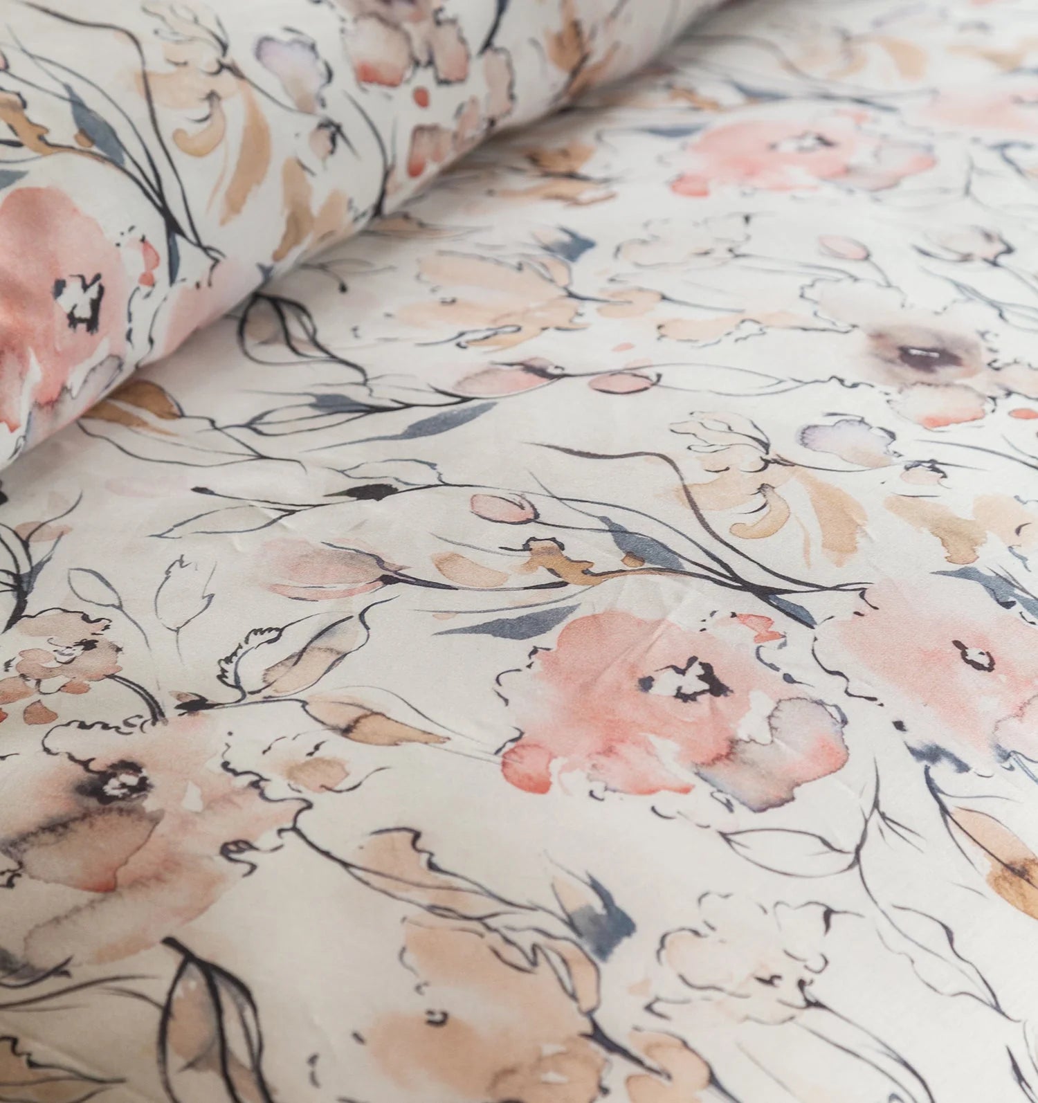 The Joceline sateen bedding set combines airy softness with a refined, understated pattern. Its smooth cotton satin surface reflects light gently, adding a fresh, elegant presence to the bedroom while enhancing overall comfort.